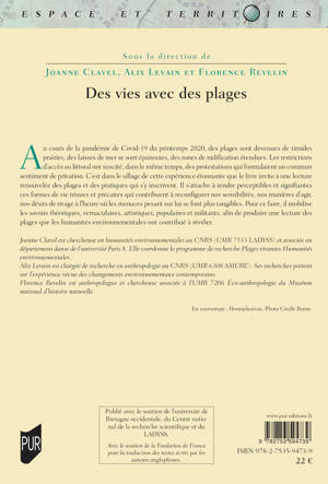 Au cours de la pandémie de Covid-19 du printemps 2020, des plages sont devenues de timides prairies, des laisses de mer se sont épanouies, des zones de nidification étendues. Les restrictions d’accès au littoral ont suscité, dans le même temps, des protestations qui formulaient un commun sentiment de privation. C’est dans le sillage de cette expérience étonnante que le livre invite à une lecture renouvelée des plages et des pratiques qui s’y inscrivent. Il s’attache à rendre perceptibles et signifiantes ces formes de vie ténues et précaires qui contribuent à reconfigurer nos sensibilités, nos manières d’agir, nos désirs de rivage à l’heure où les menaces pesant sur lui se font plus tangibles. Pour ce faire, il mobilise les savoirs théoriques, vernaculaires, artistiques, populaires et militants, afin de produire une lecture des plages que les humanités environnementales ont contribué à révéler.