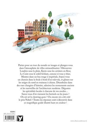 Un guide original pour découvrir le monde à travers 30 villes extraordinaires !<br /><br /> Partez pour un tour du monde en images et plongez-vous dans l’atmosphère de villes extraordinaires ! Découvrez Londres sous la pluie, Kyoto sous les cerisiers en fleur, Le Caire sous le soleil brûlant, comme si vous y étiez. Montez dans un bus rouge à impériale, frayez-vous un chemin dans la foule à bord d’un tuk-tuk, et glissez sur les neiges du nord en traîneau à chiens. Déambulez dans des rues chargées d’histoire, admirez les monuments anciens et les merveilles de l’architecture moderne. Dégustez les spécialités locales à chacune de vos escales... Savez-vous d’où viennent les bretzels ou les jeans ? Où est né le chewing-gum ? Ou encore où a été créé le prix Nobel ? Toutes les réponses sont à découvrir dans ce magnifique guide illustré haut en couleur !<br />