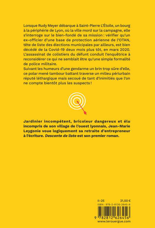 Lorsque Rudy Meyer débarque à Saint-Pierre L'Étoile, un bourg à la périphérie de Lyon, où la ville mord sur la campagne, elle s'interroge sur le bien-fondé de sa mission : vérifier qu'un ex-officier d'une base de protection aérienne de l'OTAN, tête de liste des élections municipales par ailleurs, est bien décédé de la Covid 19 deux mois plus tôt, en mars 2020. L'assassinat de colistiers du défunt conduit l'enquêtrice à reconsidérer ce qui ne semblait être qu'une simple formalité de police militaire. Suivant les humeurs d'une gendarme un brin trop sûre d'elle, ce polar mené tambour battant traverse un milieu périurbain réputé léthargique mais secoué de tant d'inimitiés que l'on ne compte bientôt plus les suspects !