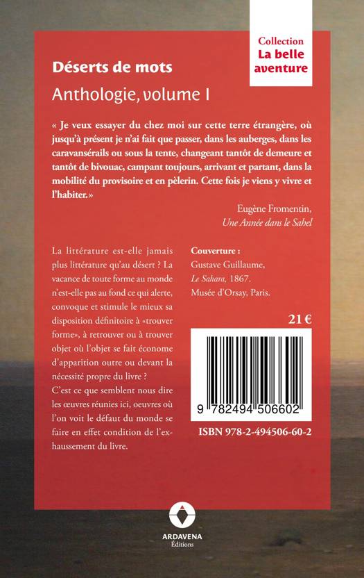 La littérature est-elle jamais plus littérature qu'au désert ? La vacance de toute forme au monde n'est-elle pas au fond ce qui alerte, convoque et stimule le mieux sa disposition définitoire à "trouver forme", à retrouver où à trouver objet où l'objet se fait économe d'apparition outre ou devant la nécessité propre du livre ? C'est ce que semblent nous dire les oeuvres réunies ici, oeuvres où l'on voit le défaut du monde se faire en effet condition de l'exhaussement du livre.