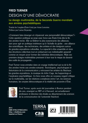« Comment faire émerger et s’épanouir une personnalité démocratique ? » Cette question politique se pose avec force aux États-Unis dès la fin des années trente. Elle va fédérer la plus surprenante des alliances, tant pour agir en politique intérieure qu’à l’échelle du globe : une alliance des scientifiques, des ingénieurs, des artistes et des designers autour de grandes expositions culturelles. La capacité à être ensemble et vivre des émotions collectives tout en préservant son individualité apparaît comme un moyen pour former des individus démocratiques. Mais ces premiers designs multimédias prennent à leur tour le risque de devenir des outils de propagande... Fred Turner nous entraîne dans un voyage intellectuel qui va de la fin des années trente aux années soixante. Sociologues, psychologues et théoriciens de la communication y retrouvent les artistes du Bauhaus, les grandes expositions, la musique de John Cage, les happenings et l’explosion psychédélique. Ce livre nous offre un nouveau regard critique sur le multimédia, sur les relations complexes entre l’art, les sciences humaines, les utopies démocratiques et la réalité des pouvoirs d’État.