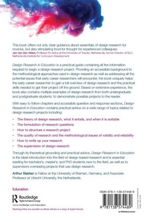 Through its theoretical grounding and practical advice, Design Research in Education is the ideal introduction into the field of design based research and is essential reading for bachelor's, master's and PhD students new to the field, as well as to supervisors overseeing projects that use design research.