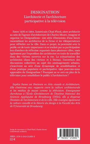 Entre 1976 et 1984, l’américain Chad Floyd, alors architecte au sein de l’agence d’architecture de Charles Moore, imagine et organise les Designathons : une série d’émissions d’une heure rassemblant les architectes de la firme et les téléspectateurs pour réfléchir sur la ville. Dans ce projet, la proximité avec le public est de toute importance et se traduit par sa participation lors d’ateliers de réflexion organisés dans plusieurs villes, mais également par l’exposition des architectes en train de travailler dans des vitrines ouvertes sur la rue. La scénarisation des architectes, l’ouverture des discussions collectives au sujet des aménagements urbains, s’inscrivent au sein d’une dynamique de sensibilisation et d’une pratique populaire et participative. Que pouvons-nous apprendre du Designathon ? Pourquoi ne se sert-on plus de la télévision pour sensibiliser le public à l’architecture ?