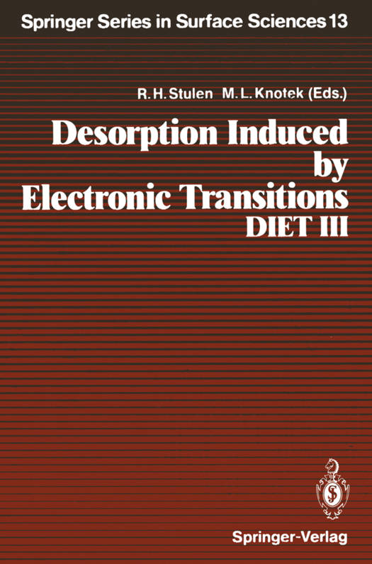 These proceedings are the result of the third international workshop on Desorption Induced by Electronic Transitions, DIET III, which took place on Shelter Island, NY, May. 20-22, 1987. The work contained in this volume is an excellent summary of the current status of the field and should be a valuable reference text for both "seasoned" researchers and newcomers in the field of DIET. Based on the success of the meeting it seems clear that interest and enthusiasm in the field is strong. It is also apparent, from the many lively discussions during the meeting, that many unanswered questions (and controversies) remain to be solved. It was particularly pleasing to see many new participants from new and rapidly advancing fields, ranging from gas phase dynamics to semiconductor processing. The resulting cross-fertilization from these separate but related fields is playing an important role in helping us understand desorption processes at solid surfaces. In general, the topics covered during the course of the workshop over- lapped those of both DIET I and DIET II. However, clear advances have been made and in general there is a much more sophisticated understand- ing of the physics and chemistry of stimulated desorption. Of particular note in this regard is the gas phase research highlighted in this workshop by the work of Nenner et al., where new results indicate that in the gas phase, photodissociation can precede or compete strongly with autoion- ization and other electronic relaxation pathways.
