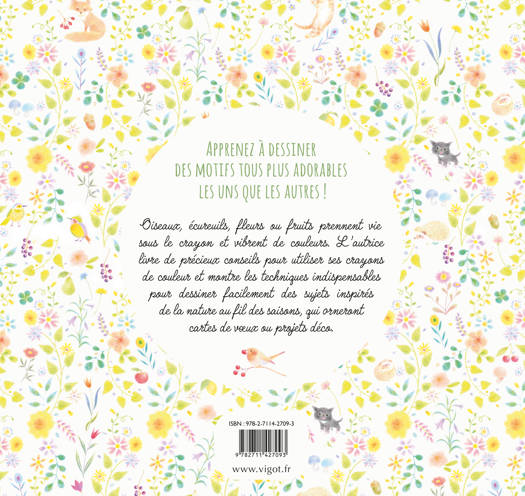 Apprenez à dessiner des motifs tous plus adorables les uns que les autres ! Oiseaux, écureuils, fleurs ou fruits prennent vie sous le crayon et vibrent de couleurs. L’autrice livre de précieux conseils pour utiliser ses crayons de couleur et montre les techniques indispensables pour dessiner facilement des sujets inspirés de la nature au fil des saisons, qui orneront cartes de vœux ou projets déco.
