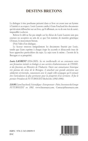 Construit autour des thèses de l’économiste-statisticien-géographe Loeiz Laurent, ancien président de FUTUROUEST-Recherches, cet ouvrage sur l’avenir de la Bretagne et sa prospérité reprend le thème des découpages territoriaux. Le lecteur trouvera intégralement les documents fournis par Loeiz, tandis que son interlocuteur, Liam, exprime à chaque étape les accords et désaccords issus de leurs approches particulières du sujet au sein du mouvement breton.