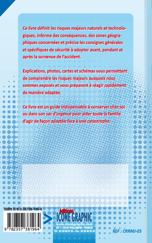 Explications, photos, cartes et schémas vous permettent de comprendre les risques majeurs auxquels nous sommes exposés et vous préparent à réagir rapidement de manière adaptée. Ce livre est une guide indispensable à conserver chez soi ou dans son sac d'urgence pour aider toute la famille d'agir de façon adaptée face à une catastrophe.