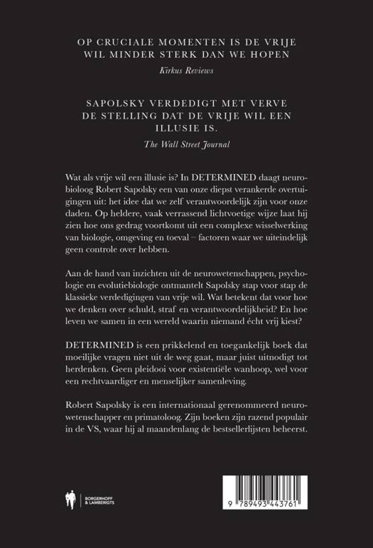 Wat als vrije wil een illusie is? In “Determined” daagt neurobioloog Robert Sapolsky een van onze diepst verankerde overtuigingen uit: het idee dat we zelf verantwoordelijk zijn voor onze daden. Op heldere, vaak verrassend lichtvoetige wijze laat hij zien hoe ons gedrag voortkomt uit een complexe wisselwerking van biologie, omgeving en toeval – factoren waar we uiteindelijk geen controle over hebben.