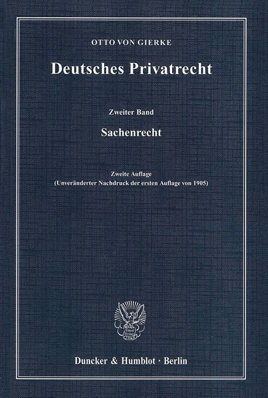 Das »Deutsche Privatrecht«, dessen drei Bände »Allgemeiner Teil und Personenrecht«, »Sachenrecht« und »Schuldrecht« in den Jahren 1895, 1905 und 1917 im Druck erschienen und dessen vierter Band »Familienrecht« erst 2010 aus dem Nachlaß herausgegeben wurde, ist nach dem »Genossenschaftsrecht« das zweite und letzte monumentale Hauptwerk Ottos von Gierke, des wohl bedeutendsten Repräsentanten der Germanistik des späten 19. Jh. Schon zu seiner Zeit als führender Dogmatiker anerkannt, bedurfte es der sozial- und rechtspolitischen Erfahrungen des 20. Jahrhunderts, um das volle Ausmaß seiner zukunftsweisenden privat- und sozialrechtlichen Konzeptionen zu erfassen.Das »Deutsche Privatrecht«, dessen Abfassung Gierke für das hochangesehene Systematische Handbuch der Deutschen Rechtswissenschaft übernommen hatte, wurde von der Kodifikation des Bürgerlichen Rechts i.J. 1900 eingeholt. Steht der erste Band noch in germanistischer Tradition, wenngleich inhaltlich neu und zukunftsweisend, insbesondere in den Abschnitten über das Persönlichkeitsrecht und Verbandsrecht, so nimmt Gierke für die folgenden Bände die Herausforderung der neuen Ära an. Er entscheidet sich für eine Gesamtdarstellung der geltenden Privatrechtsordnung unter eindringlicher Akzentuierung ihrer »germanistischen Grundbestandteile«. Darüber hinaus aber sind diese Bände zu einem weiteren eindrucksvollen Zeugnis für die enge und produktive Wechselwirkung zwischen geschichtlichem Rückblick und aktueller Dogmatik geworden, die Gierkes gesamtes Werk auszeichnet - man denke etwa an die aus geschichtlicher Rückbesinnung gewonnene Konzeption des modernen Arbeitsvertrags. Bewunderung nötigen auch heute die Anschauungskraft und Lebensnähe seiner dogmatischen Ausführungen und die souveräne Beherrschung des außerordentlich breiten Spektrums von Literatur und Quellen ab.