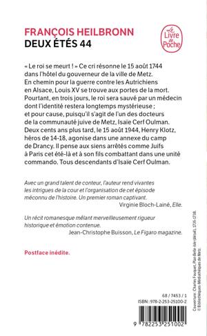 Deux cents ans plus tard, le 15 août 1944, Henry Klotz, héros de 14-18, agonise dans une annexe du camp de Drancy. Il pense aux siens arrêtés comme juifs à Paris cet été-là, et à son fils combattant dans une unité commando. Tous descendants d’Isaïe Cerf Oulman.