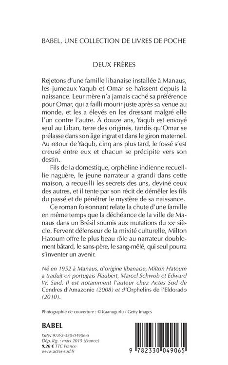 Fils d'une Indienne au service d'une famille libanaise installée à Manaus, le narrateur tente de reconstituer le passé et de savoir qui est son père. Partagé entre l'admiration et le dégoût pour Yaqub et Omar, jumeaux condamnés à répéter le mythe de la haine fraternelle, lui, le bâtard, le domestique, entreprend de raconter la chute d'une famille dans un quotidien où se dissimulent la passion, la vengeance et l'inceste.