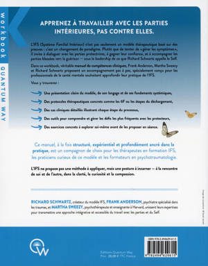 Apprenez à travailler avec vos parties intérieures, pas contre elles. L’IFS (Système Familial Intérieur) n’est pas seulement un modèle thérapeutique basé sur des preuves : c’est un changement de paradigme. Plutôt que de tenter de « gérer les symptômes », il invite à dialoguer avec les parties protectrices, à gagner leur confiance, et à accompagner les parties blessées vers la guérison — sous le leadership de ce que Richard Schwartz appelle le Self. Dans ce workbook, véritable manuel de compétences cliniques, Frank Anderson, Martha Sweezy et Richard Schwartz proposent un accompagnement pas à pas, spécialement conçu pour les professionnels de la santé mentale souhaitant approfondir leur pratique de l’IFS. Le lecteur y trouvera : une présentation claire du modèle, de son langage et de ses fondements systémiques ; des protocoles thérapeutiques concrets comme les 6F ou les étapes du déchargement ; des cas cliniques détaillés illustrant chaque étape du processus ; des outils pour comprendre et gérer les défis les plus fréquents avec les protecteurs ; des exercices expérientiels à explorer soi-même avant de les proposer en séance. Ce manuel, à la fois structuré, expérientiel et profondément ancré dans la pratique, est un compagnon de choix pour les thérapeutes en formation IFS, les praticiens curieux de ce modèle et les formateurs en psychotraumatologie. L'IFS ne propose pas une méthode à appliquer, mais une posture à incarner — à la rencontre de soi et de l’autre, dans la clarté, la curiosité et la compassion.