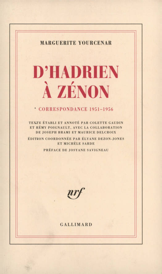 "Cette intégrale des lettres autorisées par Marguerite Yourcenar, de la publication de Mémoires d'Hadrien (1951) jusqu'à 1956, accompagne ce premier chef-d'oeuvre par rapport auquel "mes livres précédents seront évalués à l'avenir... et qui représentent le travail de toute une vie". Elles montrent l'écrivain aussi attentif au processus de publication qu'au processus de création, dans la gestion infatigable de son oeuvre. Émerge de cette correspondance une Yourcenar peu connue, qui conseille, proteste, légifère, attaque, revendique, se défend, défend les autres, se fait avocate, procureur, comptable, iconographe, correctrice, traductrice et, surtout, admirable critique et interprète de son oeuvre propre. [...] Et pourtant ces documents où l'auteur de Mémoires d'Hadrien quitte le peplum et se laisse aller à l'humeur du quotidien, jusque dans certain relâchement d'expression, dissiperont bien des idées reçues sur cet esprit libre et son humour parfois décapant : "Le respect d'un texte est une forme de respect de la vérité", écrit-elle à Alexis Curvers. C'est le même souci d'exactitude qui a inspiré les éditeurs de cette correspondance dans l'établissement et l'annotation de ces lettres. Des lettres où progressivement le laboratoire de Mémoires d'Hadrien s'ouvre sur la refonte d'une oeuvre ancienne, antichambre de L'oeuvre au Noir." Élyane Dezon-Jones et Michèle Sarde.
