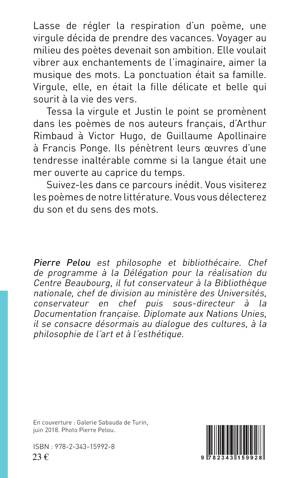 Tessa, la virgule échappée d'un poème, et Justin, le point, se promènent d'un auteur à l'autre : Arthur Rimbaud, Victor Hugo, Guillaume Apollinaire, Francis Ponge... Ensemble, ils pénètrent les oeuvres phares de la littérature française, voguent entre les mots, comme si la langue était une mer ouverte aux caprices du temps.