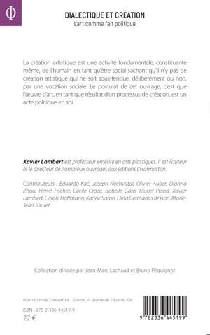 La création artistique, est une activité fondamentale, constituante, même, de l'humain en tant qu'être social sachant qu'il n'y pas de création artistique qui ne soit sous-tendue, délibérément ou non, par une vocation sociale. Le postulat de cet ouvrage, c'est que l'oeuvre d'art, en tant que résultat d'un processus de création, est un acte politique en soi.