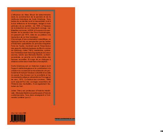 Ce bref ouvrage instaure un dialogue entre deux historiens majeurs du XXe siècle, Marc Bloch (1886-1944), pionnier de l'histoire critique, et Carlo Ginzburg (1939-), maître de la microhistoire. Dans un parcours articulé autour de trois textes signés Carlo Ginzburg (1965, 1973 et 2024), ce livre montre comment Bloch a jeté les bases d'une approche critique de l'histoire et témoigne du rapport de Carlo Ginzburg à l’œuvre de cet historien majeur.