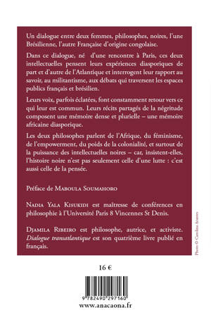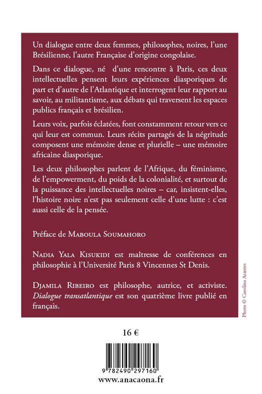 Un dialogue entre deux femmes, philosophes, noires, l'une Brésilienne, l'autre Française d'origine congolaise. Dans ce dialogue, né d'une rencontre à Paris, ces deux intellectuelles pensent leurs expériences diasporiques de part et d'autre de l'Atlantique et interrogent leur rapport au savoir, au militantisme, aux débats qui traversent les espaces publics français et brésilien. Leurs voix, parfois éclatées, font constamment retour vers ce qui leur est commun. Leurs récits partagés de la négritude composent une mémoire dense et plurielle - une mémoire africaine diasporique. Les deux philosophes parlent de l'Afrique, du féminisme, de l'empowerment, du poids de la colonialité, et surtout de la puissance des intellectuelles noires - car, insistent-elles, l'histoire noire n'est pas seulement celle d'une lutte : c'est aussi celle de la pensée.