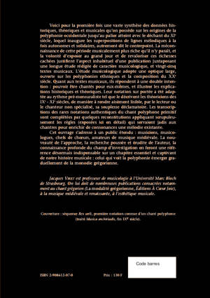 Voici pour la première fois une vaste synthèse des données historiques, théoriques et musicales qu’on possède sur les origines de la polyphonie occidentale jusqu’au palier atteint avec le déchant du XIe siècle, lequel inaugure les superpositions de lignes mélodiques à la fois autonomes et solidaires, autrement dit le contrepoint. La méconnaissance de cette période musicalement plus riche qu’il n’y paraît, et la volonté d’exposer au grand jour et de revaloriser ces richesses cachées justifient l’aspect inhabituel d’une publication juxtaposant une longue étude rédigée de caractère musicologique, et vingt-cinq textes musicaux. L’étude musicologique adopte une optique large, ouverte sur les polyphonies ethniques et la composition du XXe siècle. Quant aux textes musicaux, ils répondent à une double intention : pouvoir être chantés pour eux-mêmes, et illustrer les explications historiques et théoriques. Leur notation sur portée a été adaptée au rythme pré-mensuraliste tel que le décrivent les théoriciens des IXe - XIe siècles, de manière à rendre aisément lisible, par le lecteur ou le chanteur non spécialisé, sa souplesse déclamatoire. Les transcriptions des rares notations authentiques du chant polyphone primitif sont complétées par quelques reconstitutions appliquant scrupuleusement les règles (exposées ici en détail) qui servaient jadis aux chantres pour enrichir de consonances une mélodie existante. Cet ouvrage s’adresse à un public étendu : musiciens, musicologues, chefs de choeurs, amateurs de musique médiévale. La nouveauté de l’approche, la recherche poussée et érudite de l’auteur, la connaissance profonde du champ d’investigation en feront une référence désormais indispensable sur un chapitre essentiel et captivant de notre histoire musicale : celui qui voit la polyphonie émerger graduellement de la monodie grégorienne.