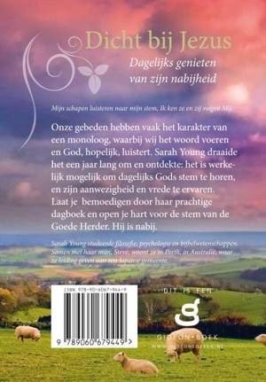 Mijn schapen luisteren naar mijn stem, Ik ken ze en zij volgen Mij. Onze gebeden hebben vaak het karakter van een monoloog, waarbij wij het woord voeren en God, hopelijk, luistert. Sarah Young draaide het een jaar lang om en ontdekte: het is werkelijk mogelijk om dagelijks Gods stem te horen, en zijn aanwezigheid en vrede te ervaren. Laat je bemoedigen door haar prachtige dagboek en open je hart voor de stem van de Goede Herder. Hij is nabij.