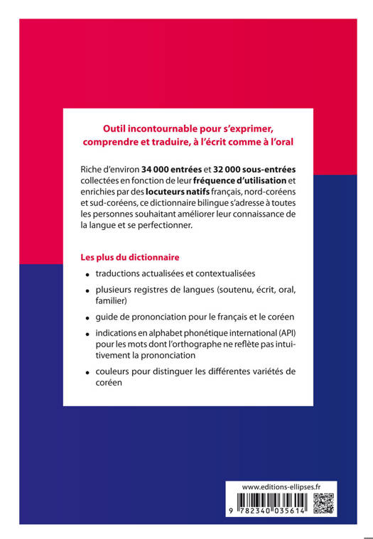 Rédigé par une équipe d’auteurs français, sud et nord-coréens, ce dictionnaire bilingue coréen-français/français-coréen, propose environ 66 000 mots et expressions d’aujourd’hui choisis en fonction de leur fréquence d’utilisation.