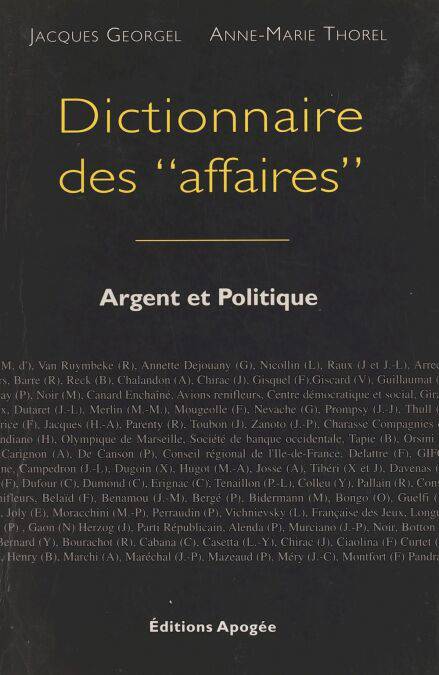 Qui peut se flatter de posséder une connaissance d’ensemble des affaires politico-judiciaires qui, depuis une dizaine d’années, en France et ailleurs, ont défrayé la chronique — et parfois déclenché la panique — de façon intermittente, puis permanente ? Jacques Georgel et Anne-Marie Thorel en offrent, ici, une - vision, aussi compréhensible et claire que possible, au lecteur désireux de savoir ce dont il parle et ce dont on lui parle. Ce dictionnaire est un démêloir, non un livre d’opinion : à chacun de se faire la sienne.