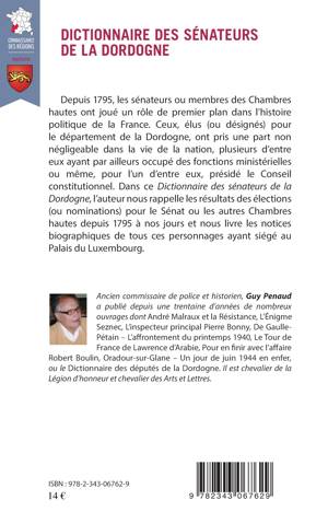 L'auteur nous rappelle les résultats des élections pour le Sénat ou les autres Chambres hautes dans le département de Dordogne depuis 1795. Il dresse le portrait et nous donne la biographie de ces élus ayant siégé au Palais du Luxembourg qui ont joué un rôle non négligeable dans l'histoire de la France, plusieurs d'entre eux ayant occupé des fonctions ministérielles ou même présidé le Conseil Constitutionnel.