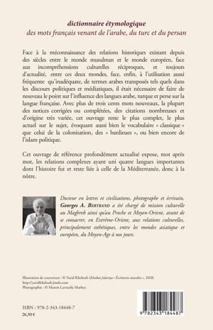 Cette troisième édition comporte plus de 300 mots nouveaux, la plupart des notices corrigées ou complétées, des citations nombreuses et d'origine très variée. Face à la méconnaissance des relations historiques existant depuis des siècles entre le monde musulman et le monde européen, face aux incompréhensions culturelles réciproques, entre ces deux mondes, face, enfin, à l'utilisation aussi fréquente qu'inadéquate, de termes arabes transposés tels quels dans les discours politiques et médiatiques, il était nécessaire de faire de nouveau le point sur l'influence des langues arabe, turque et perse sur la langue française.