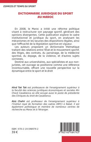En 2008, le Maroc a initié une réforme politique visant à restructurer son paysage sportif, générant des opinions divergentes. Cette publication explore le cadre institutionnel et juridique du sport, en analysant les mécanismes et les lacunes des dispositions légales, ainsi que l'efficacité de la législation sportive en vigueur. Les auteurs proposent un dictionnaire thématique traitant des relations entre l'État et le mouvement sportif, des litiges, des contrats, du parrainage, de la médecine sportive, du dopage, de la violence, et d'autres sujets connexes. Destiné aux universitaires, aux spécialistes et aux non-juristes, cet ouvrage se positionne comme une référence incontournable, offrant une nouvelle perspective sur la dynamique entre le sport et le droit.