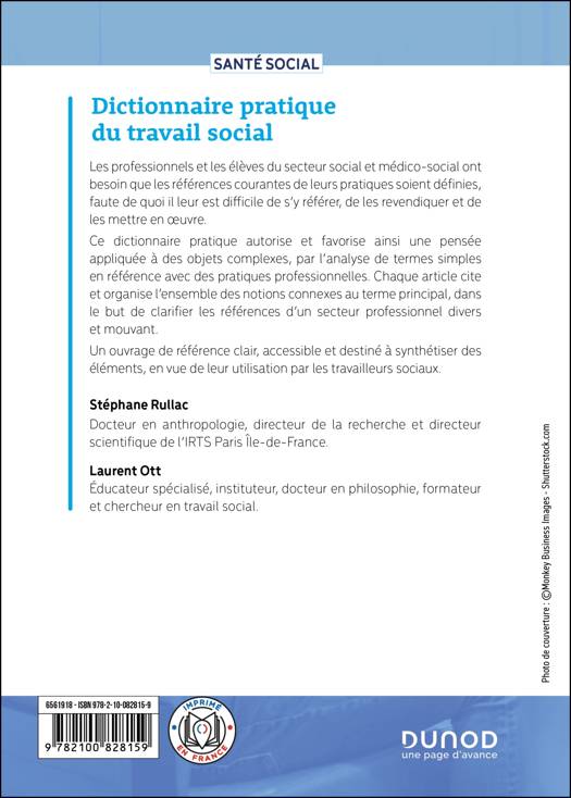 Ce dictionnaire donne pour la première fois des définitions précises de termes spécifiques au travail social. Chaque article est court mais complet. Il resitue le sens général du terme traité dans le champ professionnel. Son développement fait référence et explicite les notions qui y sont généralement associées. Les évolutions et les tendances de l’emploi du terme et de son sens sont mises en perspective. L’article fait également référence aux pratiques et aux usages associés, mais aussi aux limites et incertitudes du sens commun. Enfin, une courte bibliographie clôture le propos qui est signé par son auteur. Nouvelle édition revue et augmentée