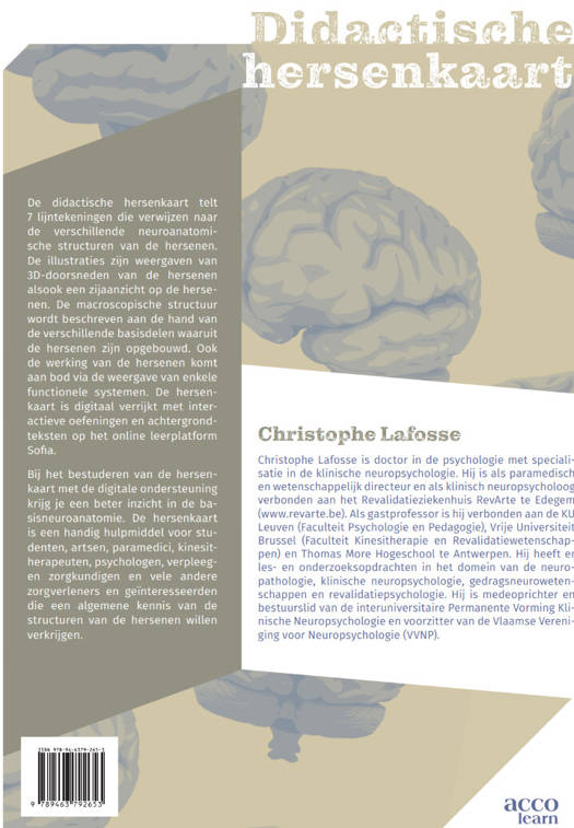 Bij het bestuderen van de hersenkaart met de digitale ondersteuning krijg je een beter inzicht in de basisneuroanatomie. De hersenkaart is een handig hulpmiddel voor studenten, artsen, paramedici, kinesitherapeuten, psychologen, verpleegen zorgkundigen en vele andere zorgverleners en geïnteresseerden die een algemene kennis van de structuren van de hersenen willen verkrijgen.