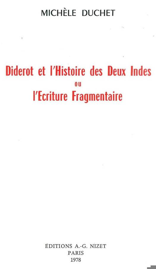 Étude sur la contribution exacte de Diderot à L'Histoire des Deux Indes, encyclopédie sur le commerce européen en Extrême-Orient, publiée en 1770 et longtemps attribuée au seul abbé Raynal.