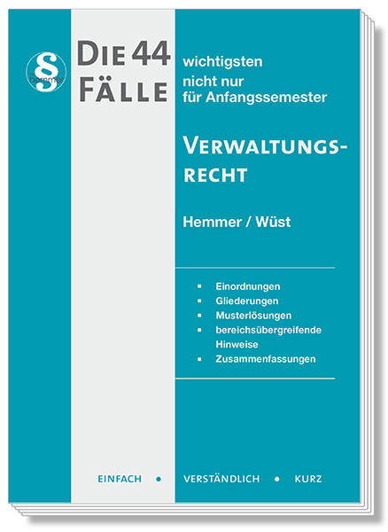 In 44 Fällen haben wir für Sie klassische Probleme des Verwaltungsrechts für Klausur und Hausarbeit systematisch aufbereitet. Diese Fallsammlung ist einfach, verständlich und knapp gehalten. Zum Aufbau: Die Einordnung im Anschluss an den Sachverhalt erleichtert Ihnen den Zugang zu den jeweiligen Problemfeldern. Problem erkannt - Gefahr gebannt. Die Gliederung ermöglicht eine schnelle Übersicht. Die Musterlösungen dienen als Formulierungshilfen für Ihre Klausur. Bereichsübergreifende Hinweise dienen dem Verständnis. Nur so vernetzen Sie frühzeitig gelerntes Wissen. Auf diese Weise können Sie in kürzester Zeit die wichtigsten Probleme zum Verwaltungsrecht anwendungsspezifisch erlernen. Als Profis mit langjähriger Erfahrung und Erfolg wissen wir, was von Ihnen in Klausur und Hausarbeit erwartet wird.Inhalt:AnfechtungsklageVerpflichtungsklageFortsetzungsfeststellungsklageAllgemeine Leistungs-/ Feststellungsklage