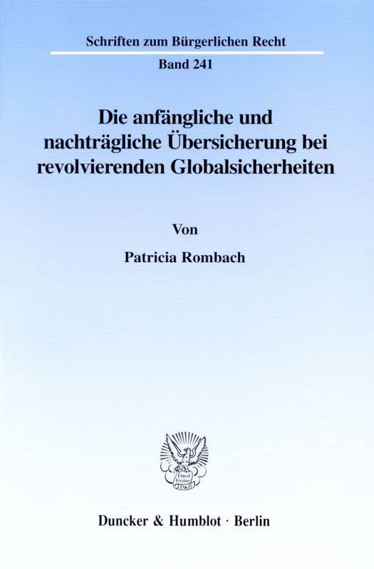 Die Autorin widmet sich der Frage nach der inhaltlichen und methodischen Vereinbarkeit der Entscheidungen zur nachträglichen und anfänglichen Übersicherung bei revolvierenden Globalsicherheiten. Nach der dogmatischen Einordnung des von der Rechtsprechung entwickelten Freigabeanspruchs bei nachträglicher Übersicherung werden die unterschiedlichen Vertragsgestaltungen untersucht, bei denen es zu einer nachträglichen bzw. anfänglichen Übersicherung kommen kann, und die Frage nach der Wirksamkeit solcher Verträge gestellt.Die Verfasserin kommt zu dem Ergebnis, daß die Ungleichbehandlung von anfänglicher und nachträglicher Übersicherung sachlich gerechtfertigt sei, da in beiden Fallgruppen unterschiedliche Schutzgesichtspunkte betroffen seien. Auf diese Weise gibt Patricia Rombach der mehr einem unreflektierten Rechtsgefühl entfließenden Differenzierung ein rationales Fundament, welches nicht zuletzt dem Praktiker den sicheren Umgang mit den dargestellten Formen der Übersicherung erlaubt.