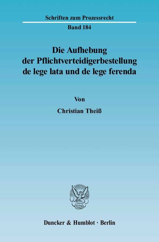 Die Abberufung oder Auswechslung des Pflichtverteidigers bereitet in der Praxis regelmäßig Probleme. Gleichwohl sind die Voraussetzungen, unter denen die Bestellung eines Pflichtverteidigers aufgehoben werden kann, rechtsdogmatisch im einzelnen immer noch ungeklärt. Christian Theiß strebt an, durch eine eingehende Analyse der gesetzlichen Regelungen und der Rechtsprechung zur Beseitigung dieser dogmatischen Unsicherheit beizutragen.