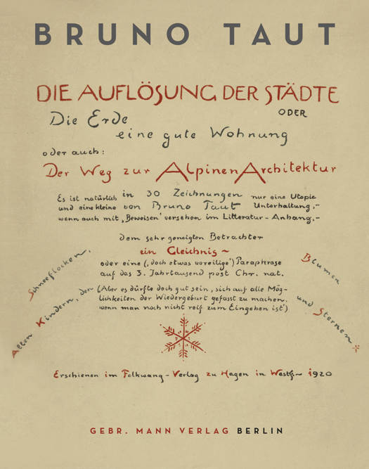 English summary: A utopian vision from the crisis after the First World War reread: Bruno Taut had been collecting political and especially socialist texts since the summer of 1918. He prepared excerpts from essays on city and soil issues, a total of 82 pages, so that they, together with 30 of his own drawings, describe the earth's surface as a "good apartment" for all people. German description: Eine utopische Vision aus der Krisenzeit nach dem Ersten Weltkrieg wiedergelesen: Seit Sommer 1918 hatte Bruno Taut politische und vor allem sozialistisch gepragte Texte gesammelt. Auszuge aus Aufsatzen zu Stadt- und Bodenfragen, insgesamt 82 Seiten, bereitete er so auf, dass sie zusammen mit 30 eigenhandigen Zeichnungen die Erdoberflache als eine "gute Wohnung" fur alle Menschen beschreiben. Voraussetzung dazu war seiner Ansicht nach die Eliminierung aller Stadte und Staaten. Tauts Ziel war es, die Konsequenzen einer gleichmaaigen Verteilung der Menschen unter den Bedingungen eines glucklichen, aus innerer Notwendigkeit jedes Einzelnen entstehenden Bedurfnisses zu zeigen. Das Buch sollte seine Leser zu Reflexionen befahigen, "auf das hin, was in der Gegenwart beim Bau neuer Siedlungen zu beachten ist." Ihren unbegrenzten Formenreichtum konnte man fast vegetabil und biologisch nennen. Mitgedacht sind hier Konzepte fur Verkehrsplanung, Energieversorgung und Selbstversorgertum. Mit Textauszugen von Friedrich Engels, Gustav Theodor Fechner, Friedrich Holderlin, Pjotr Kropotkin, Gustav Landauer, Wladimir Iljitsch Lenin, Friedrich Nietzsche, Novalis, W. H. Prescott, Paul Scheerbart, Lew Nikolajewitsch Tolstoi, Walt Whitman u.v.a. Reprint der Erstausgabe von 1920.