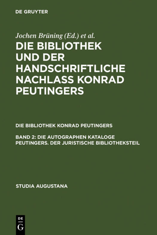 Der zweite Band über die Bibliothek Konrad Peutingers ist den separat aufgestellten juristischen Büchern gewidmet. Wie bei Band 1 bilden die beiden autographen Kataloge Peutingers, die somit vollständig ediert sind, die Grundlage für die Rekonstruktion. Erneut werden nicht nur die erhaltenen Bücher beschrieben, sondern auch die heute verschollenen Bestände möglichst exakt ermittelt. Der juristische Bibliotheksteil umfaßt vor allem die Kommentarliteratur zum römischen wie zum kanonischen Recht. Diese Werke dienten ihm über Jahrzehnte hinweg als wichtiges Arbeitsinstrument bei seinen beruflichen Aufgaben. Mit der Rekonstruktion dieses Teils der Bibliothek Peutingers ist die Grundlage für eine fundierte Erforschung der praktischen Tätigkeit eines der einflußreichsten politischen Berater und Juristen im deutschen Sprachraum in der ersten Hälfte 16. Jahrhunderts geschaffen.