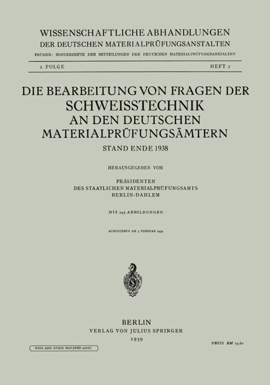 5. Die Bearbeitung Von Fragen Der Schweisstechnik an Den Deutschen Materialprüfungsämtern