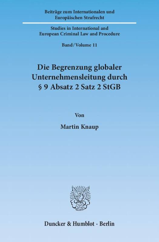 Martin Knaup widmet sich der Frage, inwieweit das Strafrecht im Bereich der Distanzteilnahme seiner Aufgabe, nicht das Recht vom Unrecht, sondern das strafbare Unrecht vom nicht strafbaren Unrecht abzugrenzen, gerecht wird. Die Internationalisierung des Wirtschaftsverkehrs wird als Anlass genommen, sich eingehend mit den spezifischen Strukturen des 9 Abs. 2 S. 2 StGB sowie den Auswirkungen der Vorschrift auf die Praxis der globalen Unternehmensleitung auseinanderzusetzen. Auf der Basis dieser Analyse werden Möglichkeiten aufgezeigt, wie die aus der Vorschrift resultierende Ausdehnung der deutschen Strafgewalt sinnvoll begrenzt werden kann. Dabei kommt der Verfasser unter Abwägung der betroffenen Interessen zu dem Ergebnis, dass die Anwendbarkeit des deutschen Strafrechts auf die inländische Teilnahme an einer ausländischen Haupttat durch die Strafbarkeit der Haupttat im Ausland bedingt sein sollte.