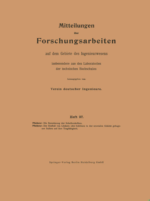 Die Berechnung Der Scheibenkolben. Der Einfluß Von Löchern Oder Schlitzen in Der Neutralen Schicht Gebogener Balken Auf Ihre Tragfähigkeit