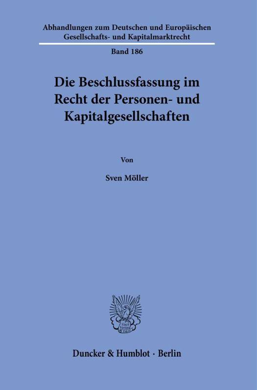 Die Beschlussfassung bildet die Grundlage fur die Willensbildung und Willensauaerung von Verbanden. In ihren Einzelheiten ist die Dogmatik von Beschlussen bis heute umstritten, was auch auf das Fehlen einer allgemeinen gesetzlichen Grundlage zuruckzufuhren ist. In der vorliegenden Arbeit werden unter Berucksichtigung des bisherigen Diskussionsstandes in Rechtsprechung und Schrifttum Parallelen, aber auch Unterschiede zwischen Personen- und Kapitalgesellschaften aufgezeigt. Daran anschlieaend werden die gesetzlichen Stimmverbotsregelungen in den Blick genommen. Obwohl diese eine herausragende praktische Relevanz aufweisen, sind sowohl Anwendungsbereich als auch Umfang der Stimmverbote nicht vollends geklart. Ein besonderer Fokus der Arbeit liegt auf dem Verbot von Insichgeschaften nach 181 BGB und dessen Bedeutung fur die Stimmrechtsvertretung.