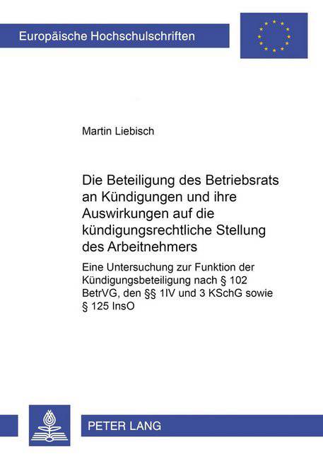 Die Arbeit befasst sich mit der Kündigungsbeteiligung des Betriebsrats nach § 102 BetrVG, den §§ 1 IV und 3 KSchG sowie § 125 InsO. Diese Regelungen erzeugen aufgrund ihrer kündigungsrechtlichen Auswirkungen ein Spannungsverhältnis zum individualrechtlichen Kündigungsschutz. Um festzustellen, ob die Herbeiführung dieses Spannungsverhältnisses gerechtfertigt ist, werden § 102 BetrVG, die §§ 1 IV und 3 KSchG sowie § 125 InsO auf die Funktionen untersucht, die sie der Betriebsratsbeteiligung zuweisen. Dabei wird der Funktionsuntersuchung auch eine ausführliche Betrachtung der geschichtlichen Entwicklung der Kündigungsbeteiligung zugrundegelegt. Die herausgearbeiteten Funktionen weisen den Weg zur Lösung verschiedener streitiger Auslegungsfragen.