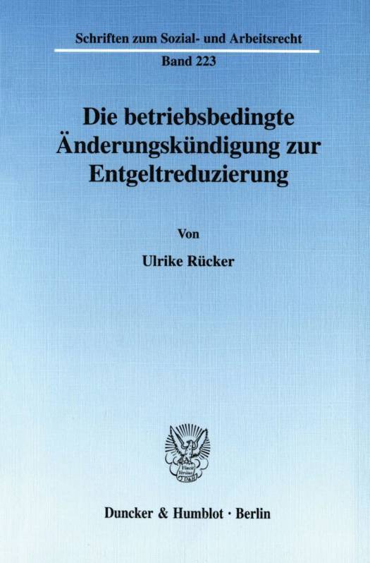 Ulrike Rücker unterzieht die von der höchstrichterlichen Rechtsprechung entwickelten Voraussetzungen einer betriebsbedingten Änderungskündigung zur Entgeltreduzierung und andere in der Literatur und der Instanzrechtsprechung vertretene Lösungsansätze einer kritischen Überprüfung und arbeitet Widersprüche und offene Fragen heraus. Die gesetzlichen Tatbestandsmerkmale einer Änderungskündigung zur Entgeltreduzierung werden unter Zugrundelegung eines neuen Gesetzesverständnisses und unter Berücksichtigung des besonderen Schutzzwecks der Änderungskündigung neu bewertet. Die Autorin entwirft ein Prüfungskonzept, das zwischen Arbeitgeber und Arbeitnehmer einen Interessenausgleich schafft, indem die wirtschaftlichen Notwendigkeiten einerseits und die Grenzen der Zumutbarkeit einer Entgeltreduzierung andererseits angemessen berücksichtigt werden.
