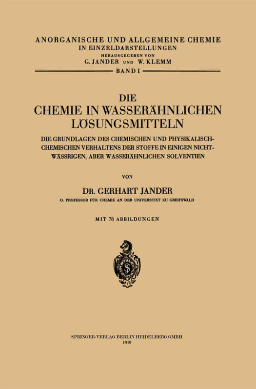 Die zunehmende Bedeutung der physikalischen Untersuchungs- methoden für naturwissenschaftliche Forschungen hat es mit sich gebracht, daß der gasförmige Zustand der Materie fast ausschließlich ein Arbeitsfeld der Physiker geworden ist. Andererseits sind die Forschungen über den festen Zustand der Stoffe mehr und mehr den Krystallchemikern, Krystallographen und Mineralogen zugefallen. Man hat daher gelegentlich von einer Tragik der anorganischen Chemie gesprochen, denn ihr sei als wissenschaftliches Arbeitsgebiet eigentlich nur noch der flüssige und gelöste Zustand der Materie geblieben. Über die Berechtigung und die Bedeutung dieser Ansicht läßt sich zweifellos diskutieren. Aber selbst wenn man diese Anschauung gelten lassen wollte, so ist für den modernen Anorganiker eine fast uner- schöpfliche Fülle von interessanten Themen und verschiedenartigen Problemen allein in der Chemie der Flüssigkeiten und der Lösungen vorhanden. Man muß sie nur sehen. Beiträge hierzu möchten, so hofft der Verfasser, die in dem vorliegenden Buch besprochenen Unter- suchungen sein. Die Monographie über die Grundlagen der Chemie in nichtwäßrigen, aber "wasserähnlichen" Lösungsmitteln ist einerseits aus Abhand- lungen über einschlägige Untersuchungen entstanden, die zum Teil noch nicht veröffentlicht worden sind, andererseits aus Vorträgen und Vorlesungen, welche im Laufe des letzten Jahrzehntes über spezielle Bereiche des Hauptthemas vor deutschen wissenschaftlichen Ver- einigungen gehalten worden sind. Bei diesen Gelegenheiten ist dem Verfasser immer wieder nahegelegt worden, das gesamte Arbeitsgebiet doch einmal im Zusammenhang darzustellen. Sein großer Umfang hat es mit sich gebracht, daß im Rahmen einer Monographie nicht alle hierher gehörenden Publikationen der internationalen chemischen Fachliteratur berücksichtigt werden konnten.