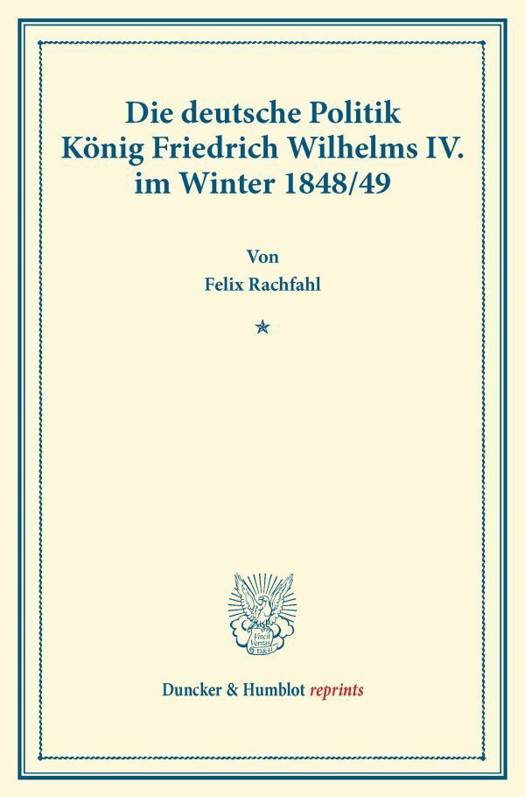 Im Rahmen des Projekts »Duncker & Humblot reprints« heben wir Schätze aus dem Programm der ersten rund 150 Jahre unserer Verlagsgeschichte, von der Gründung 1798 bis zum Ende des Zweiten Weltkriegs 1945. Lange vergriffene Klassiker und Fundstücke aus den Bereichen Rechts- und Staatswissenschaften, Wirtschafts- und Sozialwissenschaften, Geschichte, Philosophie und Literaturwissenschaft werden nach langer Zeit wieder verfügbar gemacht.