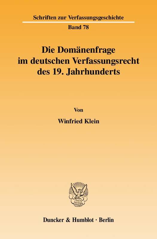 Die Domänenfrage ist ein großes Thema der deutschen Verfassungsgeschichte - die Gretchenfrage bei der Entstehung staatlicher Rechtspersönlichkeit. Diese Frage behandelt der Verfasser erstmals umfassend. Gestützt auf eingehende Archivrecherchen weist er nach, dass im 19. Jahrhundert meist nur die deutschen Fürstentümer Rechtspersönlichkeit erlangten, die staatliches Domäneneigentum kannten.