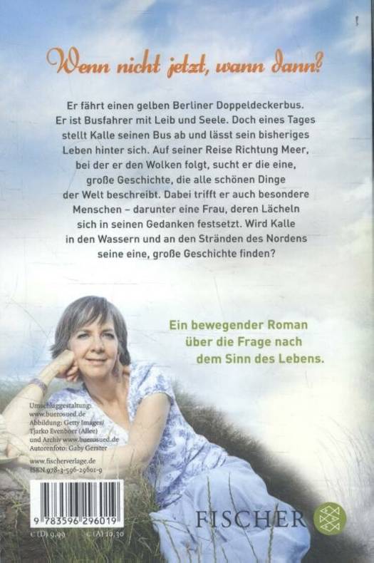 Wenn nicht jetzt, wann dann? An einem ganz normalen Tag in der Mitte seines Lebens steigt Busfahrer Kalle aus und folgt den ziehenden Wolken auf eine Reise ans Meer... Er fährt einen gelben Berliner Doppeldeckerbus. Er ist Busfahrer mit Leib und Seele. Doch eines Tages stellt Kalle seinen Bus ab und lässt sein bisheriges Leben hinter sich. Auf seiner Reise in Richtung Meer, bei der er den Wolken folgt, sucht er die eine, große Geschichte, die alle schönen Dinge der Welt beschreibt. Dabei trifft er auch besondere Menschen - darunter eine Frau, deren Lächeln sich in seinen Gedanken festsetzt. Wird Kalle in den Wassern und an den Stränden des Nordens seine eine, große Geschichte finden? Ein inspirierender und berührender Roman über die Frage nach dem Sinn des Lebens. Für Leser von Paulo Coelho, »Der Alchimist«, Rachel Joyce, »Die unwahrscheinliche Pilgerreise des Harold Fry«, Hape Kerkeling, »Ich bin dann mal weg«.