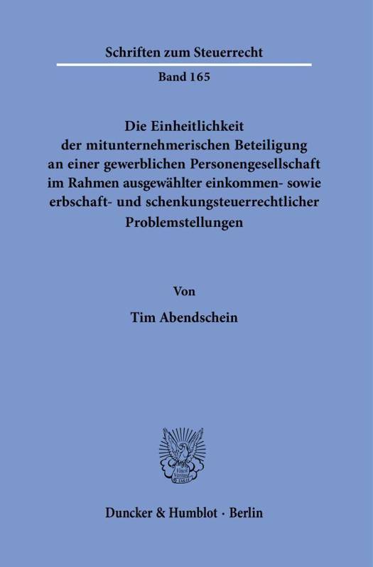 Die Einheitlichkeit Der Mitunternehmerischen Beteiligung an Einer Gewerblichen Personengesellschaft Im Rahmen Ausgewahlter Einkommen- Sowie Erbschaft- Und Schenkungsteuerrechtlicher Problemstellungen