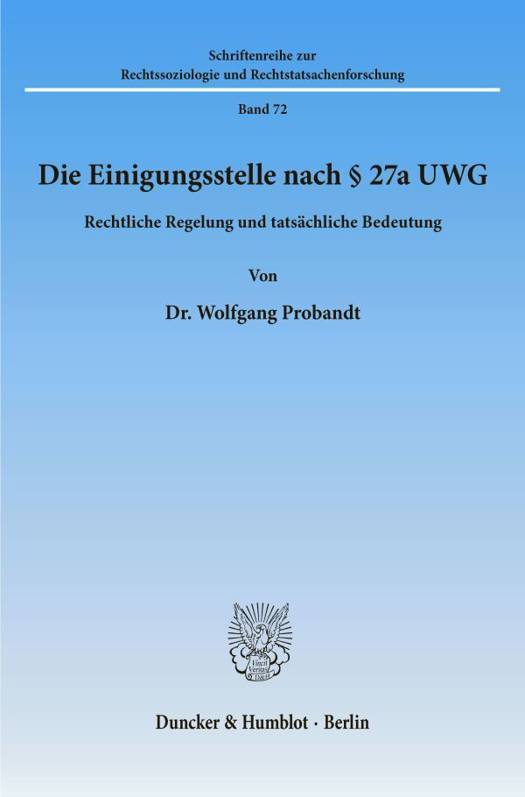 Die Einigungsstellen bei den Industrie- und Handelskammern zur Beilegung von bürgerlich-rechtlichen Streitigkeiten aus dem Gesetz gegen den unlauteren Wettbewerb (UWG) führen ein Schattendasein. Man ist leicht versucht, den 27 a UWG für totes Recht zu halten. Der Autor beweist mit seiner Arbeit das Gegenteil, zugleich zeigt er aber die Grenzen für die Leistungsfähigkeit solcher Stellen auf.Er beschreibt die historische Herkunft des Einigungsstellenverfahrens, seine Struktur, den Verfahrensablauf, seine systematische Stellung, sein Verfahren in der Rechtswirklichkeit und seine rechtstatsächliche Bedeutung, auch stellt er Überlegungen zur Verbesserung des Verfahrens an. Den Schwerpunkt der Arbeit bildet die Darstellung des Verfahrens in rechtlicher und tatsächlicher Hinsicht, wobei die rechtliche Regelung des Verfahrens in Form einer am Verfahrensablauf orientierten Kommentierung dargestellt wird. Bei der Untersuchung des Verfahrens in tatsächlicher Hinsicht greift der Autor auf eigene Erfahrungen, die er als Mitarbeiter der Einigungsstelle in Berlin sammeln konnte, zurück.Von großem Wert ist auch der empirische Teil der Untersuchung. Hier wird das umfassendste Datenmaterial vorgestellt, was jemals über die Einigungsstelle zusammengetragen worden ist. Anhand dieser Daten stellt der Autor nicht nur die Anzahl der Einigungsstellenverfahren dar, sondern er versucht darüber hinaus, die Verhältnisse in bezug auf einzelne Parameter zu erfahren.