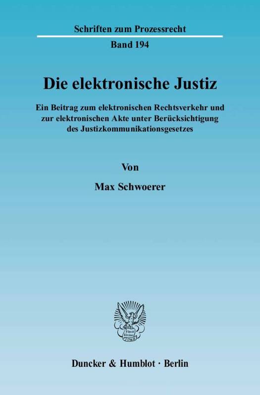 Der Einsatz von Computern ermöglicht eine Aktenbearbeitung, die sich von der herkömmlichen grundlegend unterscheidet. Schwoerer geht auf die Entwicklung und die durchgeführten Modellversuche ein, erörtert Sicherheitsaspekte und gibt eine Antwort auf die Frage, ob Richter und Rechtsanwälte vom Gesetzgeber verpflichtet werden können, ihre Urteile und Schriftsätze mit dem Computer zu erstellen, per E-Mail zu versenden und in einer elektronischen Akte zu bearbeiten. Neben den Grundlagen wird auf die einzelnen Normen des Justizkommunikationsgesetzes eingegangen. Der Autor untersucht die Auswirkungen des Gesetzes auf die einzelnen Prozessordnungen und macht konkrete Änderungsvorschläge.