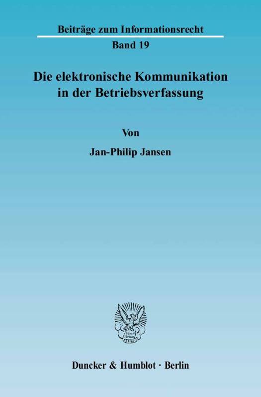 Die moderne Informations- und Kommunikationstechnologie gewinnt - genauso wie in anderen Lebensbereichen - auch in der Arbeitswelt eine ständig wachsende Bedeutung. Der Verfasser behandelt die rechtlichen Fragen, die sich im Zusammenhang mit der Nutzung elektronischer Kommunikationsformen bei den Kommunikationsabläufen in der Betriebsverfassung ergeben. Die Betriebsverfassung bietet - wie die abgedruckte Inhaltsübersicht der Dissertation zeigt - für die elektronische Kommunikation vielfältige Einsatzmöglichkeiten. Dementsprechend haben der Gesetzgeber des Betriebsverfassungsreformgesetzes 2001 und der Verordnungsgeber der Wahlordnung 2001 erste gesetzliche Regelungen zur elektronischen Kommunikation in der Betriebsverfassung geschaffen. Ferner beschäftigen Fragen um die elektronische Kommunikation in der Betriebsverfassung zunehmend die arbeitsgerichtliche Rechtsprechung und Literatur. In der betrieblichen Wirklichkeit stellen sich zahlreiche weitere wichtige Fragen.